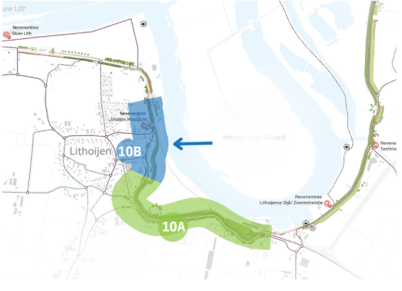 Vanaf februari starten de werkzaamheden aan het tweede deel van de dijkversterking bij Lithoijen: dijksectie 10B, oftewel de dijk gelegen tussen Lithoijensedijk 25A t/m Lithoijensedijk 17, de kruising bij Bouwoort.