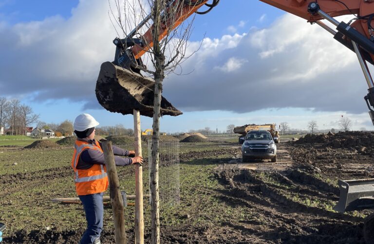 Maandag 17 november zijn we gestart met het planten van de eerste nieuwe bakenbomen in Maasbommel Oost. Deze uiterwaard is inmiddels bijna gereed wat betreft het grondwerk. De laatste klei wordt op het schip geladen. Eind november zal dit werk klaar zijn. Nu begint het inrichten van de uiterwaarden, waarbij de bomen natuurlijk niet mogen ontbreken.